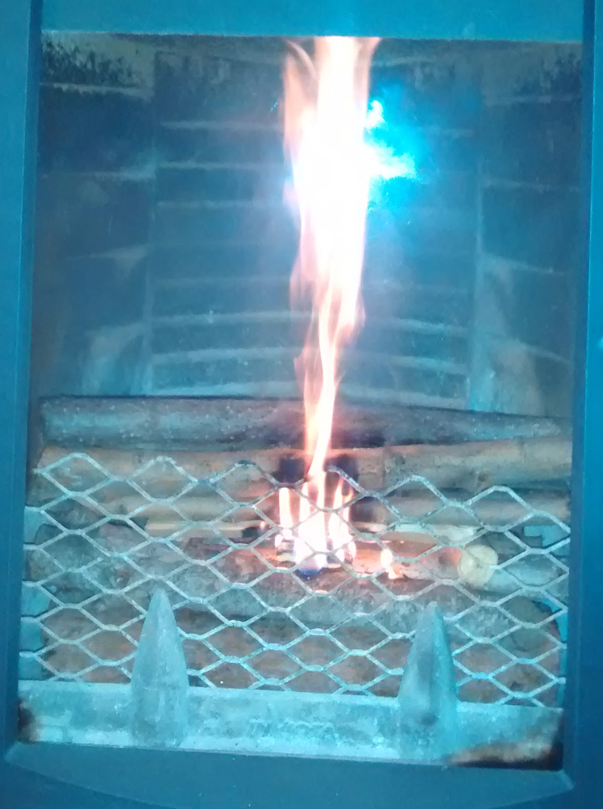 Le soir, elle a juste à gratter une allumette (en fait c'est un briquet à gaz : - ) et enflammer l'allume-feu.